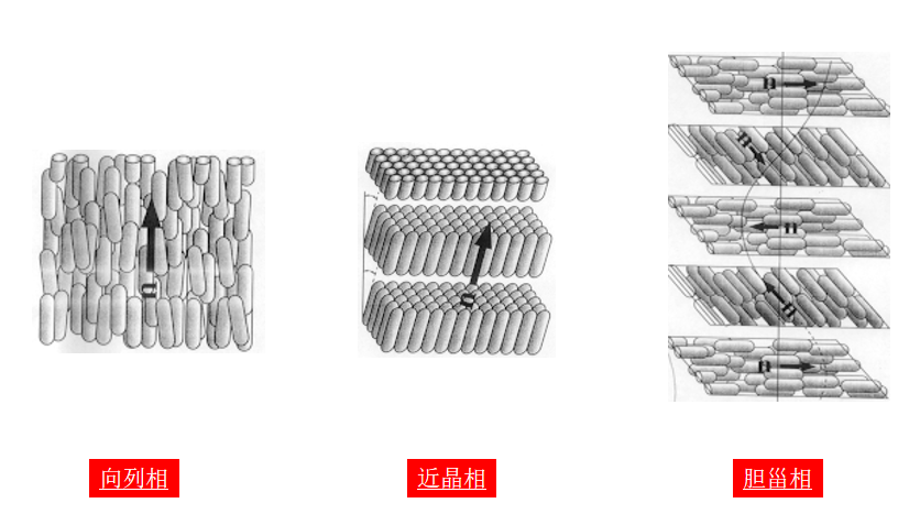 For at flydende krystaller skal have praktisk anvendelsesværdi, skal deres molekyler danne et ordnet arrangement på mikroskopisk niveau, kendt som "fasestrukturen". Disse er primært kategoriseret i tre typer: den højt ordnede smektiske fase, den nematiske fase, hvor molekylære langakser er justeret, men positioner er uordnede (den mest almindeligt anvendte i den nuværende displayteknologi), og den spiralformede kolesteriske fase.
